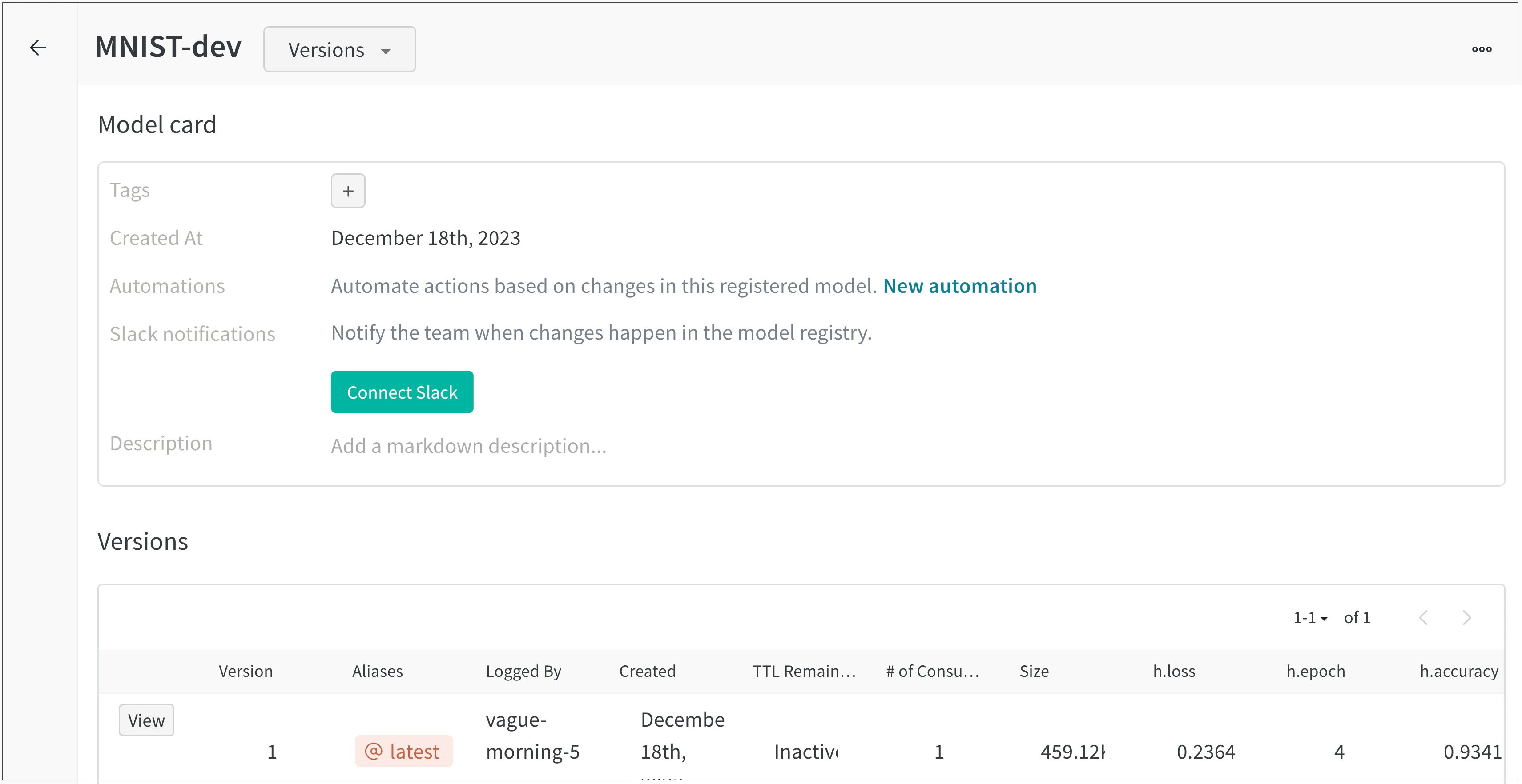 1. https://wandb.ai/registry/model의 W&B Model Registry 앱으로 이동합니다.